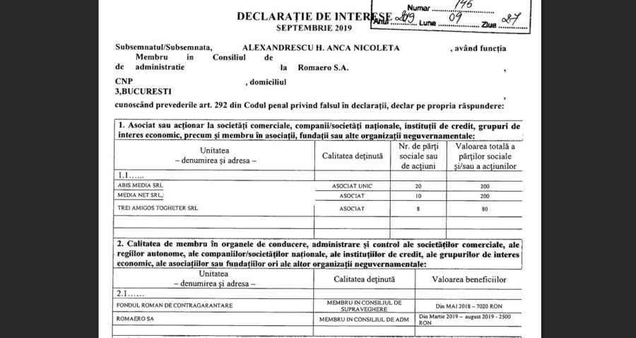În ultima declarație de avere depusă de candidata susținută de AUR pentru funcția de primar general al Capitalei, Alexandrescu susținea că a primit și 58.000 de lei dividende de la societatea ABIS Media SRL.
