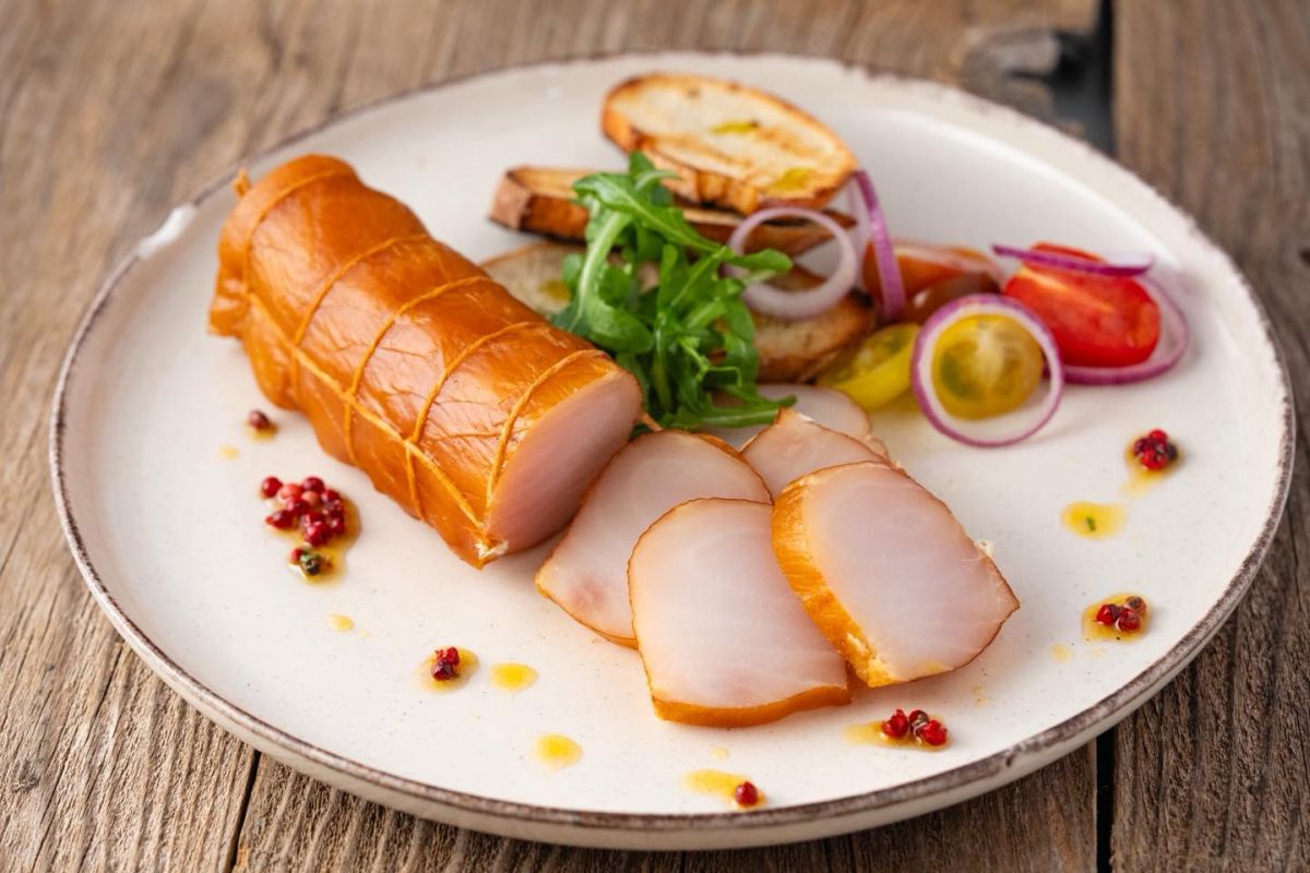 2. Procesul de fabricație include sărarea cu un amestec de sare gemă și zahăr, zvântarea până la o umiditate reziduală minimă de 35% și afumarea cu fum din lemn de esență tare.