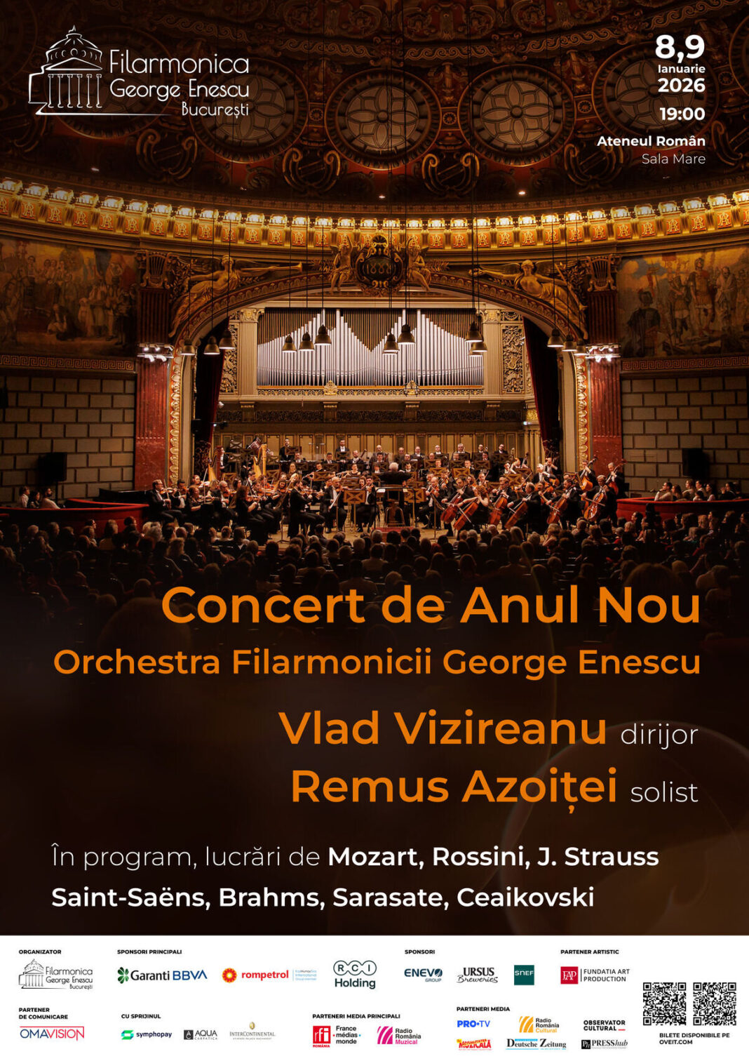 Filarmonica George Enescu deschide spectaculos Noul An și a doua parte a Stagiunii 2025-2026 cu două concerte sold-out, pe 8 și 9 ianuarie, la Ateneul Român, avându-i în prim-plan pe dirijorul Vlad Vizireanu și violonistul Remus Azoiței. Programul strălucitor, cu lucrări din repertoriul clasic și romantic, pregătit special pentru aceste seri festive, a făcut ca biletele să se epuizeze astăzi în mai puțin de 30 de minute de la punerea în vânzare.