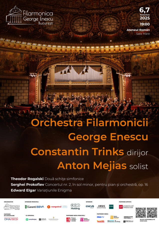 Filarmonica George Enescu îi are ca invitați, pe 6 și 7 noiembrie, pe renumitul dirijor german Constantin Trinks și pe tânărul pianist Anton Mejias. Programul serilor reunește lucrări de Rogalski, Prokofiev și Elgar, într-o combinație de energie, expresivitate și măiestrie orchestrală.