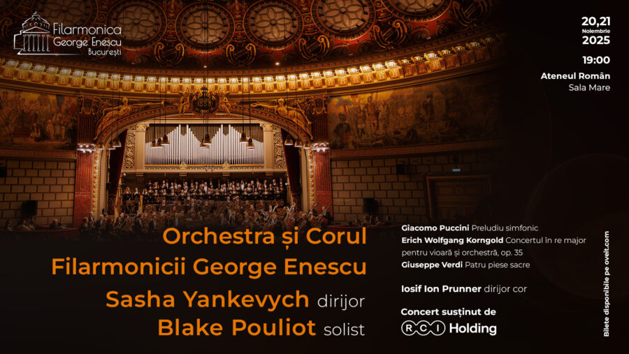 Orchestra și Corul Filarmonicii George Enescu invită publicul pe 20 și 21 noiembrie la două concerte vocal-simfonice vibrante, sub bagheta dirijorului Sasha Yankevych și avându-l ca solist pe violonistul Blake Pouliot, cu un program cu lucrări de Puccini, Korngold și Verdi.
