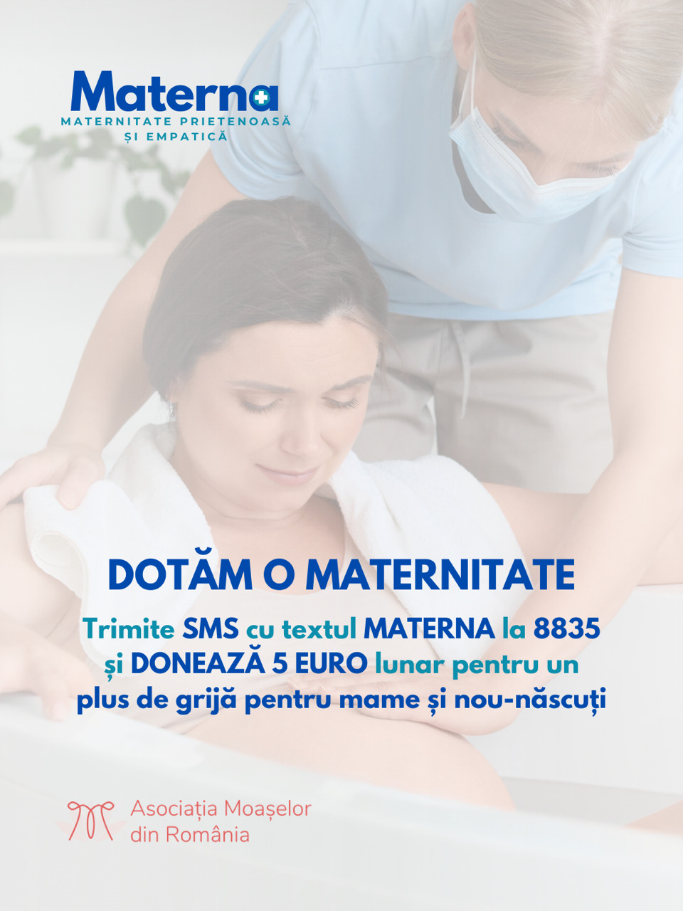 MATERNA la numărul 8835 pentru a dona 5 EURO lunar. Mai multe detalii pot fi găsite