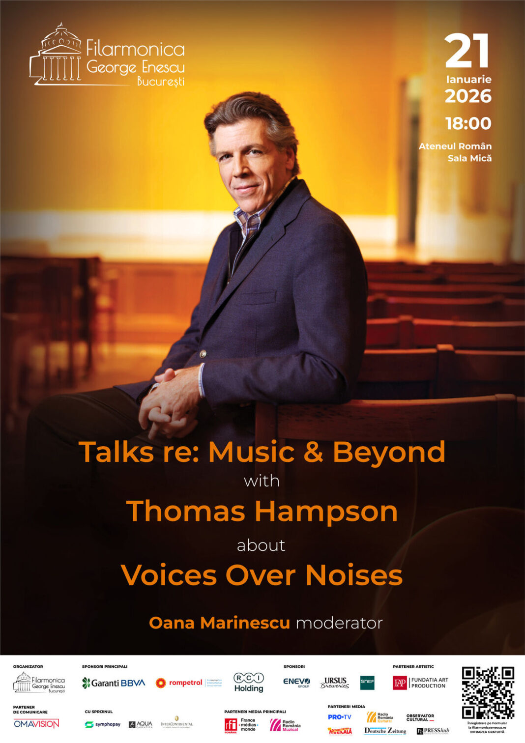 Filarmonica George Enescu îl va avea ca invitat pe Thomas Hampson, legendarul bariton cu multiple nominalizări și premii Gramophone Awards și GRAMMY, pe 21 ianuarie, la ora 18.00, în următoarea ediție Talks re: Music & Beyond, găzduită în Sala Mică a Ateneului Român. Tema întâlnirii – Voices Over Noises – deschide o conversație despre voce, nu doar ca instrument artistic, ci ca limbaj al experienței umane, o formă de responsabilitate față de comunitate și față de adevăr.
