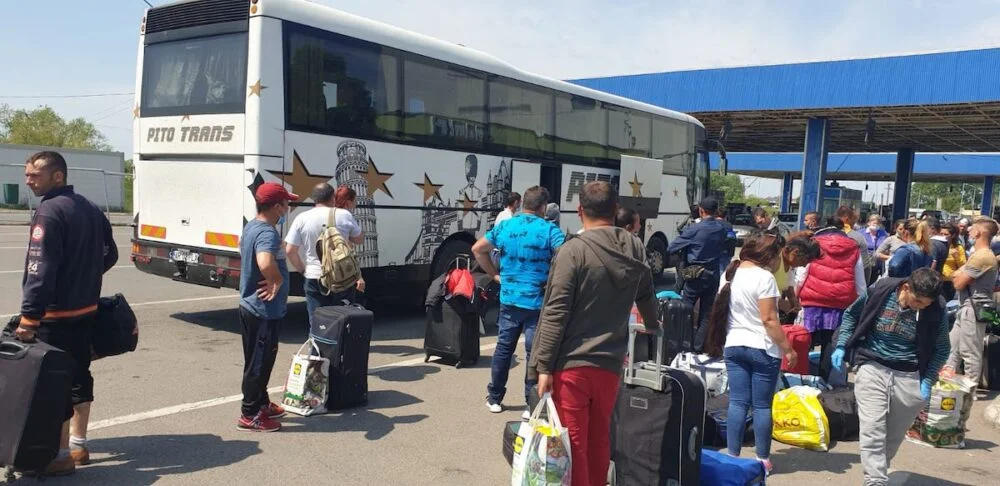 Oamenii așteaptă în vamă, în condiții improprii, până când se pot îmbarca. După ce o filmare dintr-un asemenea autocar a fost făcută publică, dovedind aglomerația și condițiile inumane în care românii sunt obligați să călătorească, autoritățile au încercat să remedieze situația.
