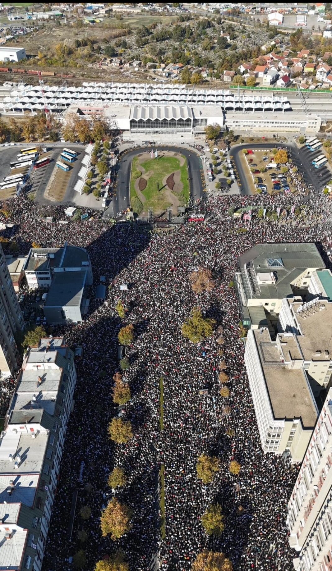 Mii de manifestanți s-au adunat sâmbătă de ziua somemorării accidentului de la Novi Sad,capitala provinciei autonome Voivodina, unde acoperișul gării a căzut, ucigând 16 oameni. Acest lucru s-a petrecut în ciuda faptului că întreaga clădire fusese renovată de către o companie chineză, fapt care a dus la mari proteste împotriva președintelui sârb Alexander Vucic în decursul acetui an.
