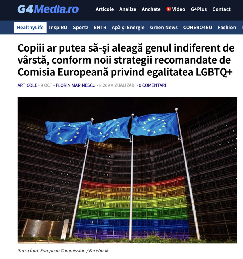 Narațiunea s-a răspândit rapid și în Europa Centrală și de Est. În România, publicații precum G4Media și Adevărul au preluat știrea britanică, prezentând-o drept o inițiativă reală a Comisiei. Titlurile au fost concepute pentru impact emoțional maxim, ignorând complet faptul că textul UE se referă la recunoașterea juridică, nu la intervenții medicale. Astfel, în câteva zile, o propoziție tehnică dintr-un document european s-a transformat într-un mit viral global, folosit deopotrivă de presa tabloidă, influenceri și politicieni eurosceptici pentru a alimenta narațiunea clasică a „dictaturii valorilor impuse de Bruxelles”.