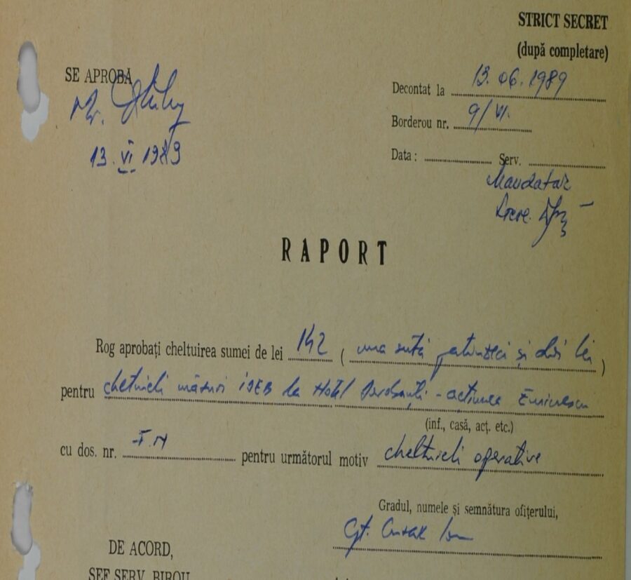 Dincolo de emoție și poezie, arhivele păstrează și detalii seci, dar grăitoare: interceptări ambientale, microfoane montate în restaurantele hotelurilor, note de plată pentru mesele ofițerilor sub acoperire. În iunie 1989, Eminescu nu era doar poetul național, ci și un pretext pentru întâlniri care nu mai puteau fi controlate.