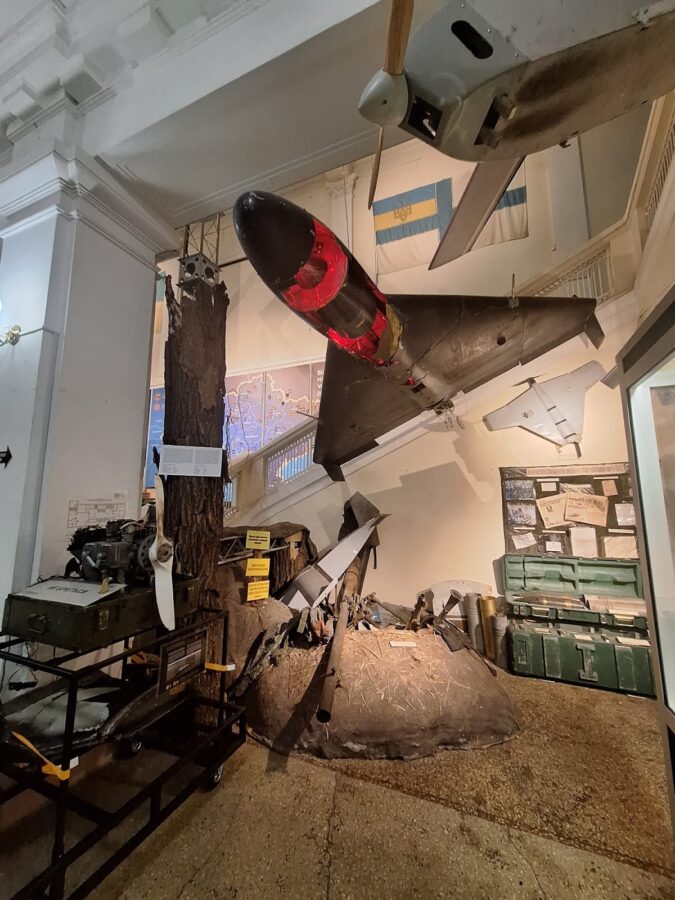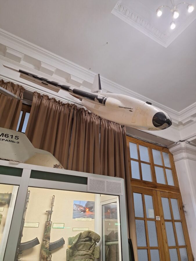 Câteva din aceste vehicule erau și în fața muzeului militar din centrul orașului. Dar conținutul din interior este cu atât mai interesant pentru cei care îi calcă pragul. Aici poți vedea drone capturate direct din luptă, unele recente (doi ani sau poate chiar unul). Ele sunt expuse pentru toată lumea, inclusiv pentru copii și profesori care pot duce clasa acolo pentru a învăța ce zboară noaptea pe cer și cu ce sunt atacați aproape în fiecare zi.