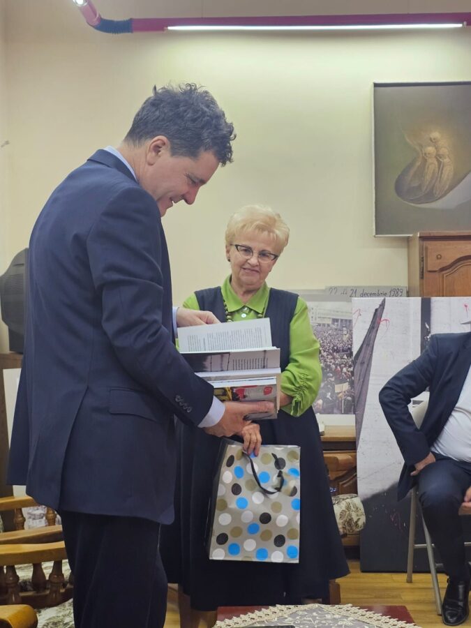 Cărțile editate de societate și de Platforma Memoriei și Conștiinței Europene, a cărei membră este Societatea Timișoara, i-au fost oferite președintelui.
