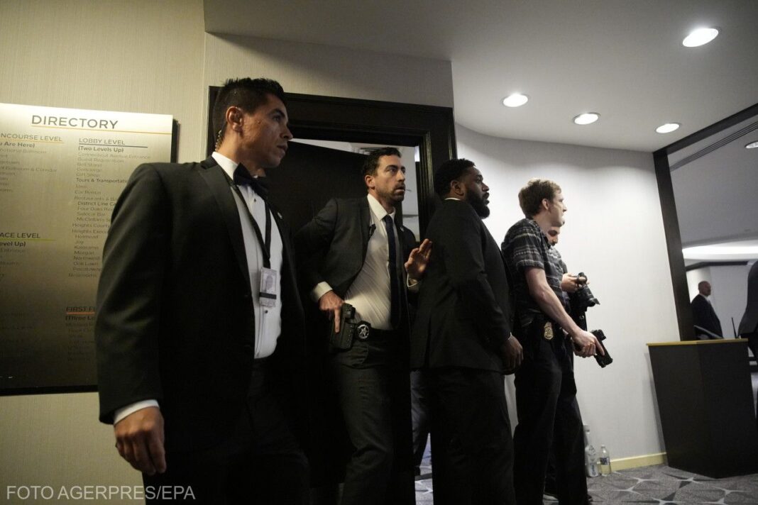După ce s-a auzit un zgomot puternic, personalul de securitate a intrat rapid în încăpere și i-a escortat afară pe președinte și pe Prima Doamnă Melania Trump.
