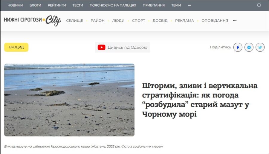Aversele de toamnă și vânturile puternice, de furtună, care au acoperit coasta Mării Negre au devenit catalizatorul unui nou val de scurgeri/emisii de petrol. Păcura a reapărut pe plajele din Anapa (regiunea Krasnodar) și Sevastopol (peninsula Crimeea) – o consecință a accidentului petrolierului din strâmtoarea Kerci de la sfârșitul anului 2024. Ecologiștii explică: schimbările hidrodinamicii, creșterea sedimentelor de pe fundul apei și distrugerea carenelor navelor scufundate duc la scurgeri repetate de substanțe toxice.