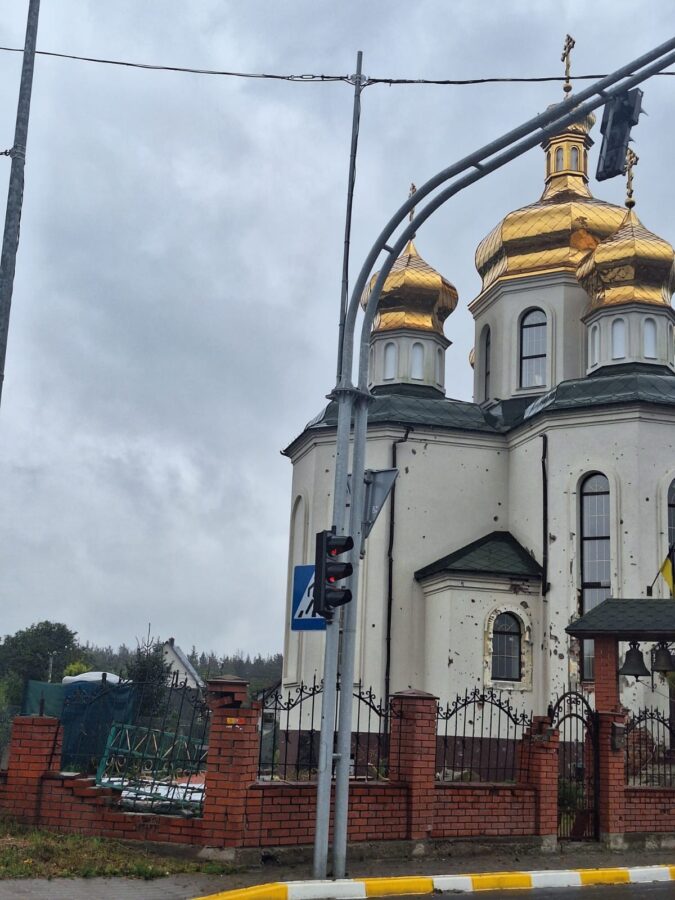 Biserica Sf. Gheorghe, intrarea în Irpin, septembrie 2025.