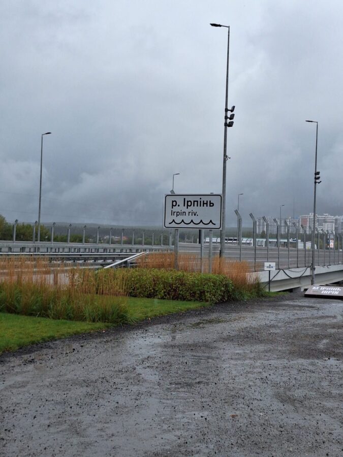 Râul Irpin îl înconjoară la intrare ca un baraj protector. Podul Romaniv a fost distrus intenționat de forțele ucrainene la sfârșitul lunii februarie/începutul lunii martie 2022. Decizia a fost una strategică, menită să oprească sau să încetinească avansul tancurilor și vehiculelor militare rusești spre Kiev. Râul reprezenta un obstacol natural semnificativ, iar distrugerea podului a forțat trupele ruse să caute rute alternative. Deși distrus din motive militare, podul a devenit un punct critic pentru evacuarea civililor din Irpin, Bucha și Hostomel, localități puternic afectate de invazie. Mii de locuitori au fost nevoiți să traverseze resturile podului pe jos, lăsând în urmă mașinile personale.
