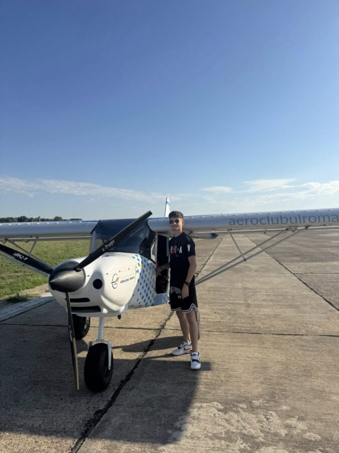 „Să devin pilot a fost un vis mai vechi al meu. În 2022, când am aflat despre cursurile organizate de Aeroclub, nu aveam încă vârsta necesară. Anul trecut, când am împlinit 16 ani, m-am înscris şi am început pregătirea. La început, teoria mi s-a părut mai grea, pentru că nu puteam să asociez ce învăţam cu ceva concret. În momentul în care am început să zbor, s-au făcut toate conexiunile şi am înţeles tot ce se predase la teorie. Primul zbor singur a venit cu foarte multe emoţii. Instructorul a coborât din avion şi mi-a spus: ‘Acum zbori singur!’. După ce am decolat, m-am liniştit şi mi-am dat seama că sunt singur şi că responsabilitatea este foarte mare. Cursul nu m-a învăţat doar să zbor, m-a făcut să gândesc din mai multe perspective şi să anticipez situaţii, să mă gândesc cum le pot preveni. Dimineaţa aveam liceu, după-amiaza luam trenul şi veneam la Ianca. Familia m-a susţinut mereu. Mai departe, vreau să mă antrenez în lotul judeţean, să particip la concursuri şi, pe viitor, mi-aş dori o carieră în aviaţie”, spune Darius.