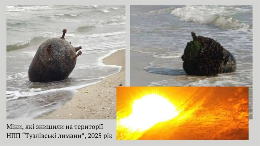 Angajații Parcului Național Tuzlivski Limany au declarat că în luna ianuarie curent, la intervale de o săptămână, în timp ce monitorizau coasta Mării Negre în cadrul zonei protejate a parcului național, unde iernează acum zeci de mii de păsări din diferite părți ale continentului european, inclusiv gâște rare cu burtă roșie, flamingo, cocori gri și alte păsări, au fost descoperite și apoi neutralizate două mine.