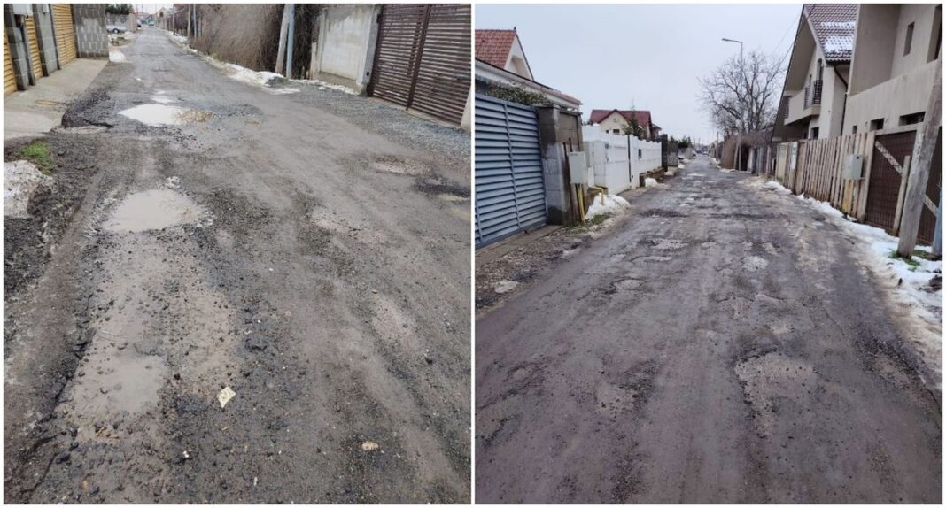 Deși o mică porțiune a străzii respective a fost asfaltată în urmă cu mulți ani, mare parte a străzii a rămas, în continuare, din pământ, peste care locuitorii au turnat pietriș. Toate lucrările de amenajare a drumului au fost realizate treptat, pe cheltuiala proprietarilor. Capacele de canalizare de pe stradă se află la cote diferite, cu variații semnificative, situație documentată inclusiv printr-o expertiză tehnică extrajudiciară plătită de unul dintre locatarii care ne-a contactat. El acuză că în zona proprietății sale canalul de apă menajeră este amplasat mult sub nivelul drumului, ceea ce duce la acumulări permanente de apă și formarea de bălți pe carosabil.