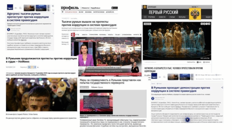 Protestele recente din România privind funcționarea justiției au devenit rapid mai mult decât un subiect de dezbatere internă: ele au fost preluate și reinterpretate în ecosistemul informațional rusofon, unde sunt folosite pentru a construi narațiuni de delegitimare a statului de drept și a Uniunii Europene. Această analiză examinează modul în care presa online și canalele Telegram în limba rusă au transformat un eveniment civic real într-un instrument propagandistic, urmărind volumele de conținut, mecanismele de amplificare și cadrele narative utilizate pentru a induce neîncredere, emoție și percepția unei „crize sistemice” în România și, prin extensie, în modelul democratic european.