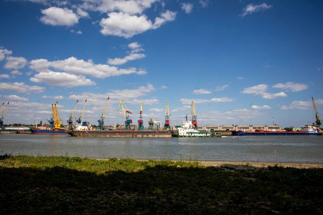 (FOTO: Nave de transport situate pe bratul Chilia, in dreptul portului ucrainean Ismail, localitatea Plauru, Tulcea. Inquam Photos / Ovidiu Micsik)
