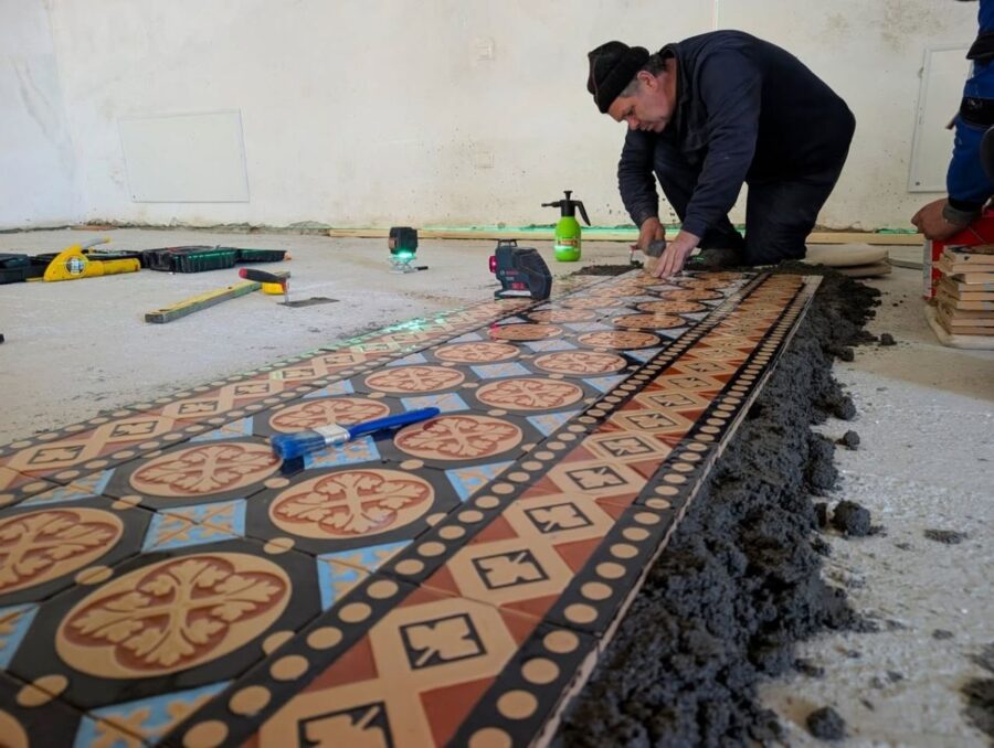 Procesul de restaurare a pardoselii din Sala Cavalerilor, din incinta Castelului Corvinilor din Hunedoara, a intrat în ultima etapă, în următoarea perioadă urmând să fie montate aici 7.969 de plăci ceramice realizate manual, după tehnologia folosită în anul 1868, de către primii restauratori ai sălii.