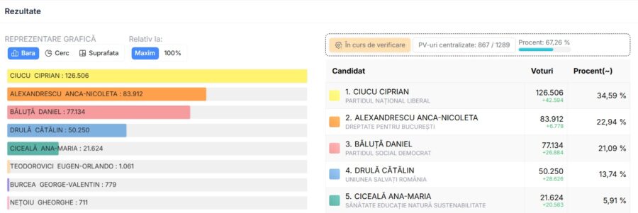 Ciprian Ciucu a avut, până acum, cea mai mare creștere: 37.494 de voturi. Creșterea Ancăi Alexandrescu cu aproimativ 30.000 de voturi nu a fost suficientă pentru a înclina balanța.