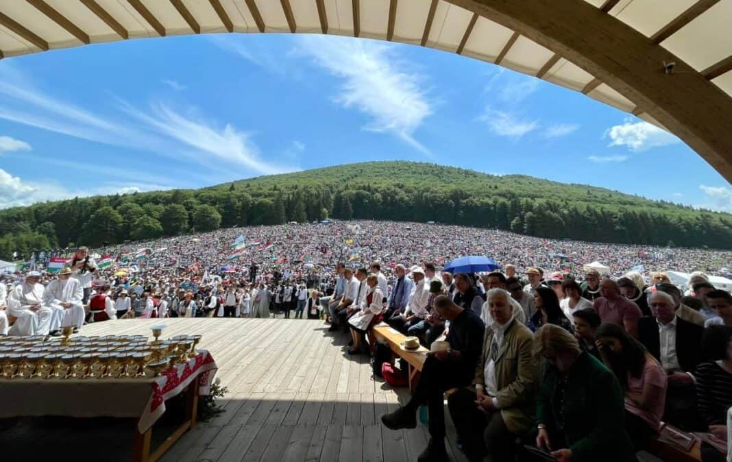 Încă de la primele ore ale dimineţii, credincioşii veniţi din ţară, dar şi din străinătate, majoritatea de limbă maghiară, s-au îndreptat spre altarul în aer liber, situat în şaua dintre muntele Şumuleu Mare şi Şumuleu Mic.
