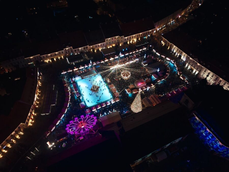 De pe scena amplasată în dreptul Bisericii romano-catolice, după câteva cuvinte de bun venit, organizatorii au dat startul numărătorii inverse: aprinderea luminițelor din cupola care acoperă piața și a celor care împodobesc bradul de Crăciun a stârnit un val de țipete de bucurie și aplauze.