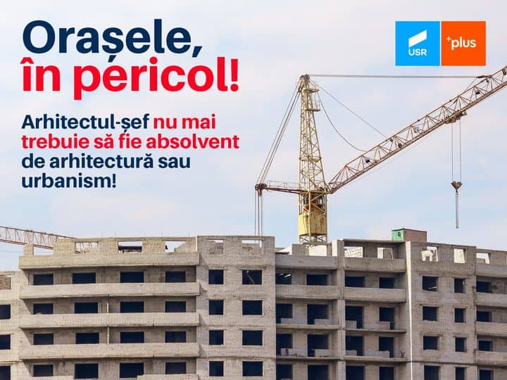USR trage un semnal de alarmă cu privire la faptul că PNL-PSD-UMDR au votat un proiect de lege care spune că persoanele responsabile de ce se construiește în comunitățile noastre nu mai trebuie să aibă pregătirea de arhitect, e suficient să fie inginer constructor sau inginer economic specializat în construcții.