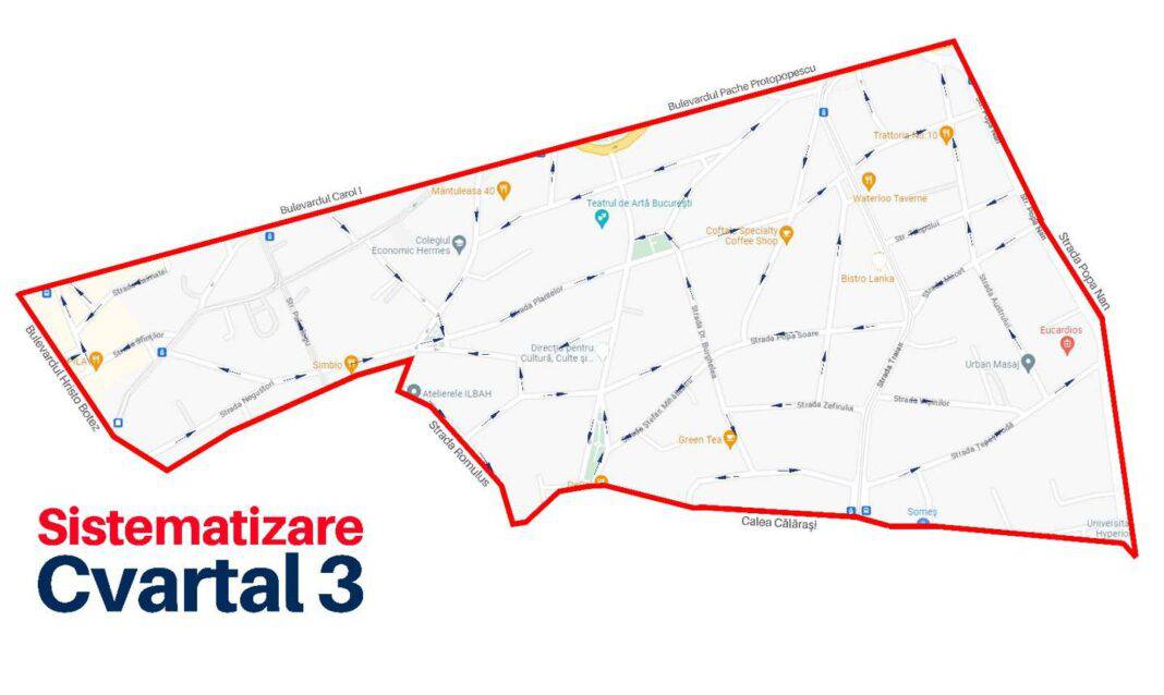 Ce înseamnă de fapt sistematizarea cartierului? Reorganizăm cvartalul astfel încât să înființăm cât mai multe sensuri unice noi, să montăm elemente de siguranță (protecții pentru pietoni în aproprierea trecerilor), să refacem toate marcajele și indicatoarele deteriorate și nu în ultimul rând, să asigurăm mijloace de limitare a vitezei în zonele de risc”, a spus primarul.