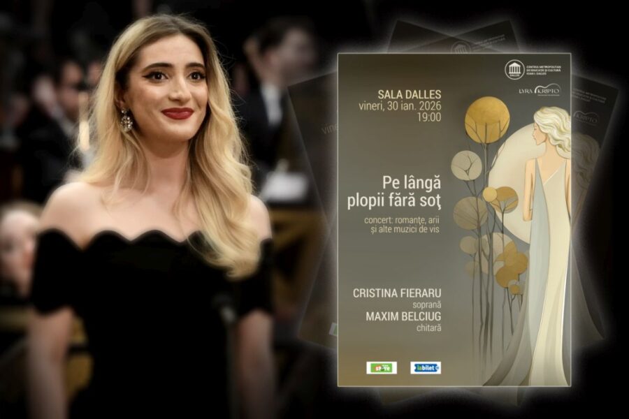 Sala Dalles din București găzduiește, în 30 ianuarie, un eveniment aparte: soprana Cristina Fieraru dă glas pe scenă iubirii în toate formele ei, într-un concert excepțional, intitulat sugestiv “Pe lângă plopii fără soț”. Acompaniată de Maxim Belciug, cu chitara sa cât o orchestră, soprana va oferi publicului o seară de emoție și sensibilitate, de dor, de pasiune și de viață, prezentând un program rafinat, care îmbină tandrețea romanțelor cu bogăția expresivă a ariilor de operă și aerul solar al canțonetelor napolitane.