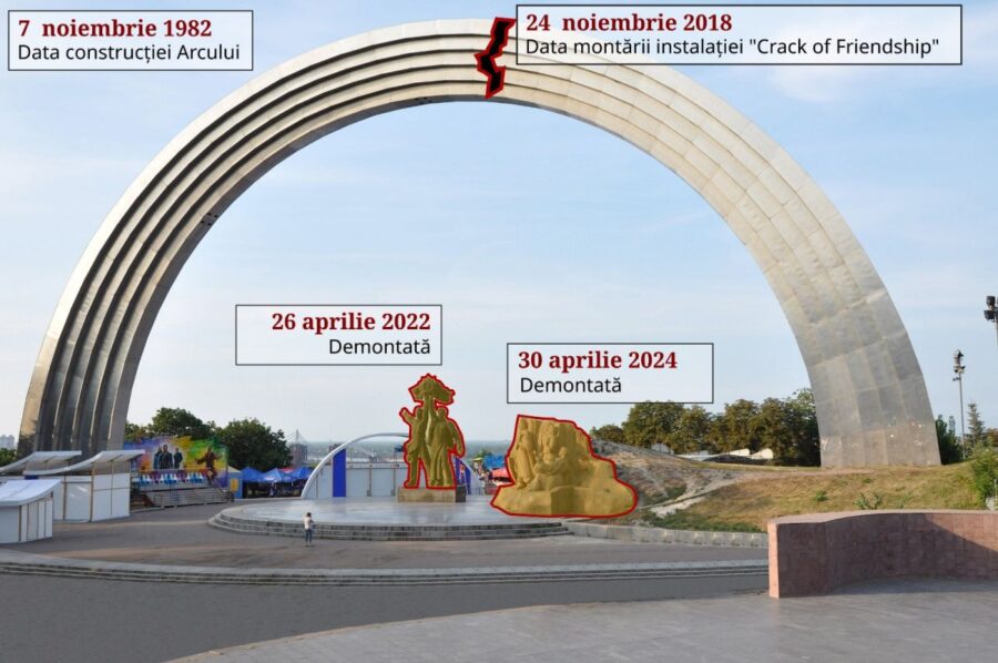 Complexul, inaugurat pe 7 noiembrie 1982 ca „Arcul Prieteniei Popoarelor,” a început să fie deconstruit simbolic pe 24 noiembrie 2018, când instalarea operei artistice „The Crack of Friendship” a coincis cu comemorarea Holodomorului (24 noiembrie 1933), legând simbolic „prietenia” sovietică de genocid.