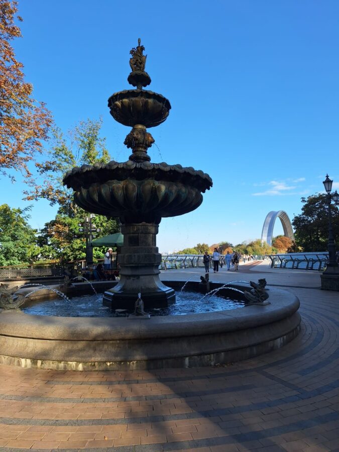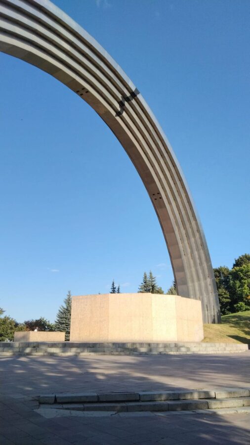 În 2007, când am văzut prima dată arcul din parc, mi se părea cumva neterminat și eram convinsă că nu așa fusese planul inițial. Nu semăna cu nimic din ce era în jur în peisaj. Asta pentru că era (și este încă) în opoziție cu parcul și cu atmosfera din jur. Aleile largi, castanii înalți și calmi, Niprul care se vede în depărtare și rondurile îngrijite arătau burghez, în total contrast cu orice element de origine sovietică.