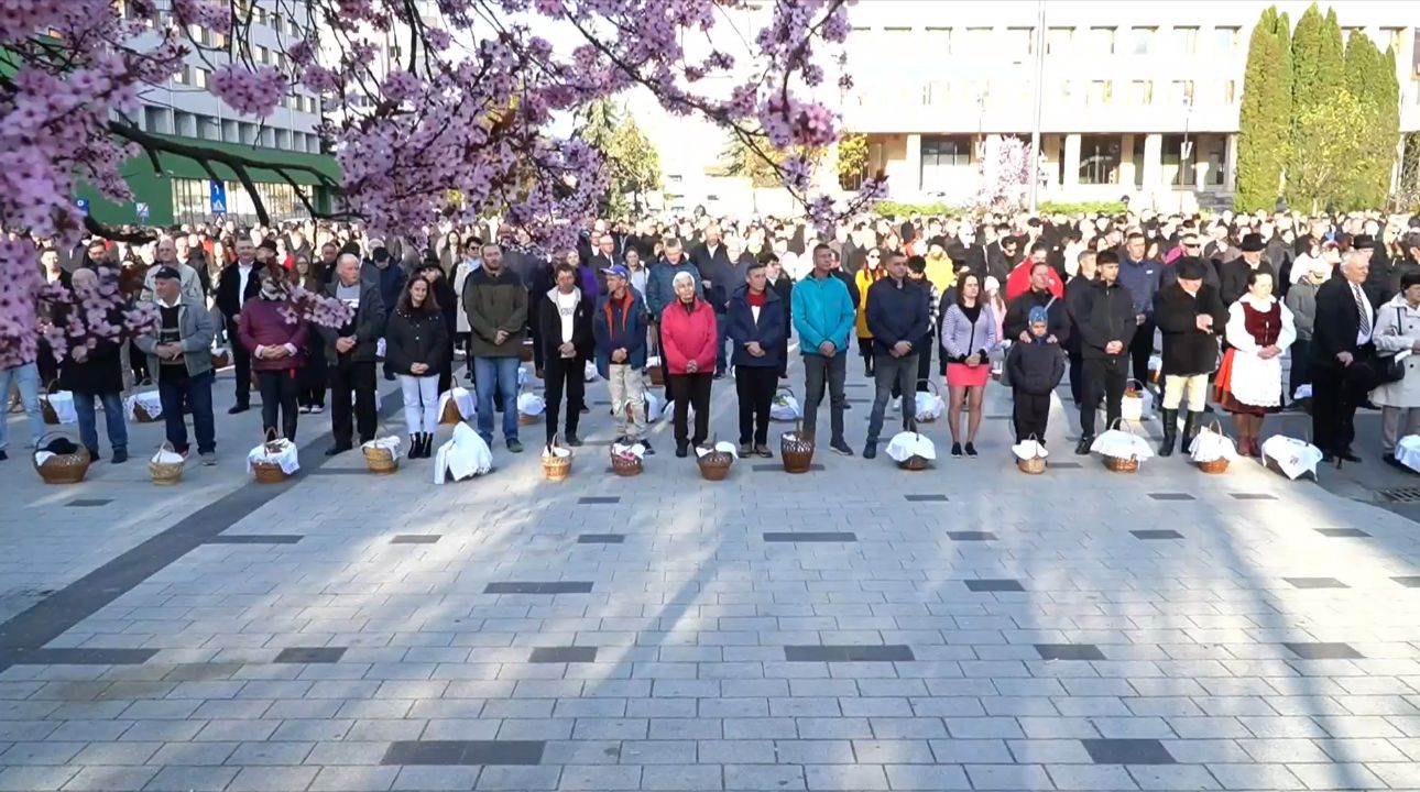 O mulţime impresionantă de persoane s-a adunat, duminică dimineaţa, în centrul municipiului Miercurea-Ciuc la tradiţionalul ceremonial de sfinţire a bucatelor de Paştele Catolic, obicei instituit în urmă cu peste 20 ani şi care este foarte iubit în zonă.