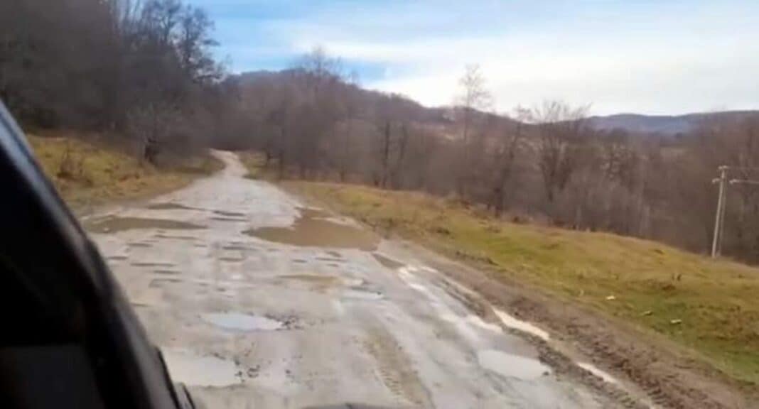 Un drum aflat într-o stare dezastruoasă, asfaltat ultima dată temeinic în 1986. Drum care, evident, e incapabil să preia traficul de pe autostradă.
