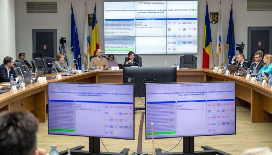 Cu 16 voturi favorabile, aleşii locali l-au împuternicit pe primarul Ionuţ Pucheanu să negocieze și să semneze, în numele și pe seama municipiului Galați, un contract de credit în valoare de 150 de milioane de lei, cu Exim Banca Românească.