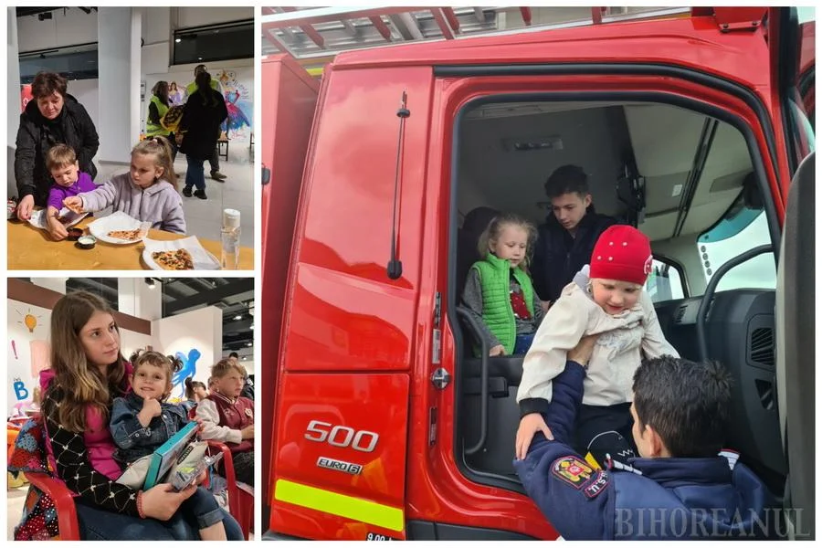 Zeci de copii din Ucraina, unii însoţiţi de mamele lor, au fost înveseliţi, vineri, de membrii câtorva organinzaţii non-guvernamentale şi de pompierii militari care se aflau la Centrul de asistenţă pentru refugiaţi, din Oradea Shopping City. Micuţii s-au urcat în autospecialele de intervenţie, au dansat şi au mâncat pizza, potrivit Bihoreanul.