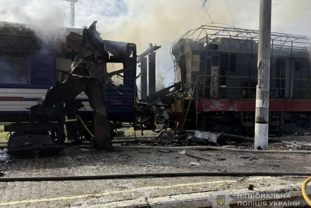 Un atac cu drone rusești asupra unei gări din nord-estul Ucrainei a lovit un tren de pasageri și a rănit zeci de persoane, a declarat sâmbătă președintele ucrainean Volodimir Zelenski, informează Politico.